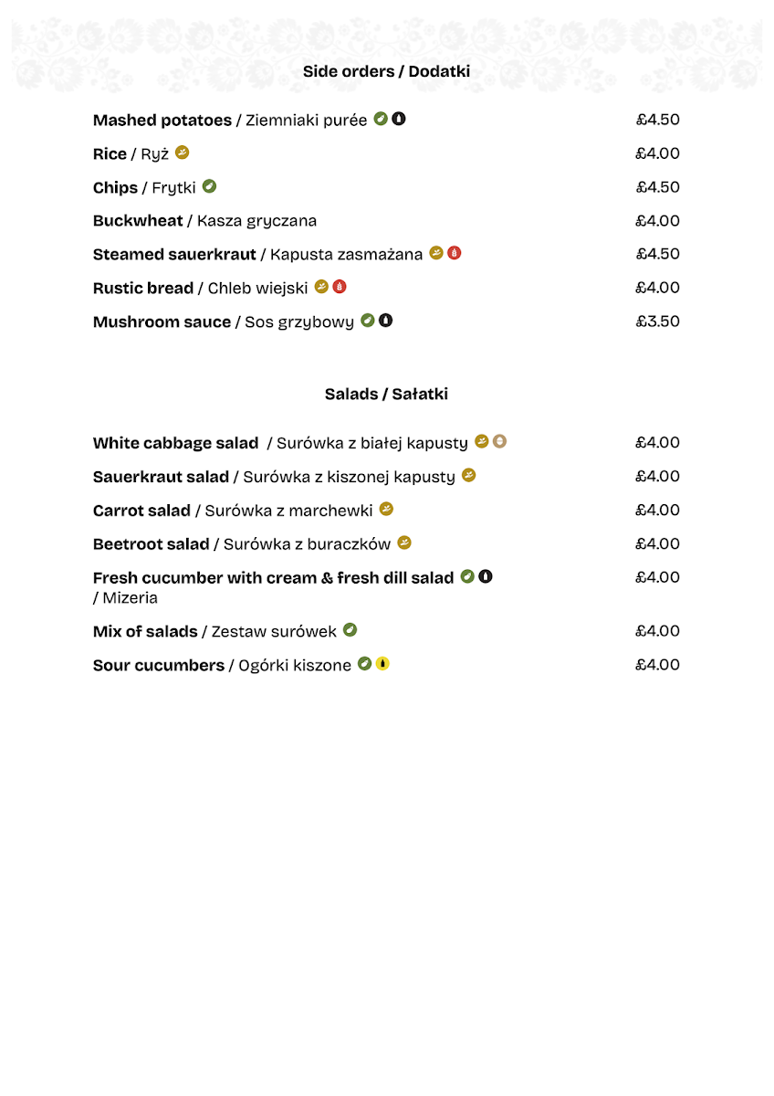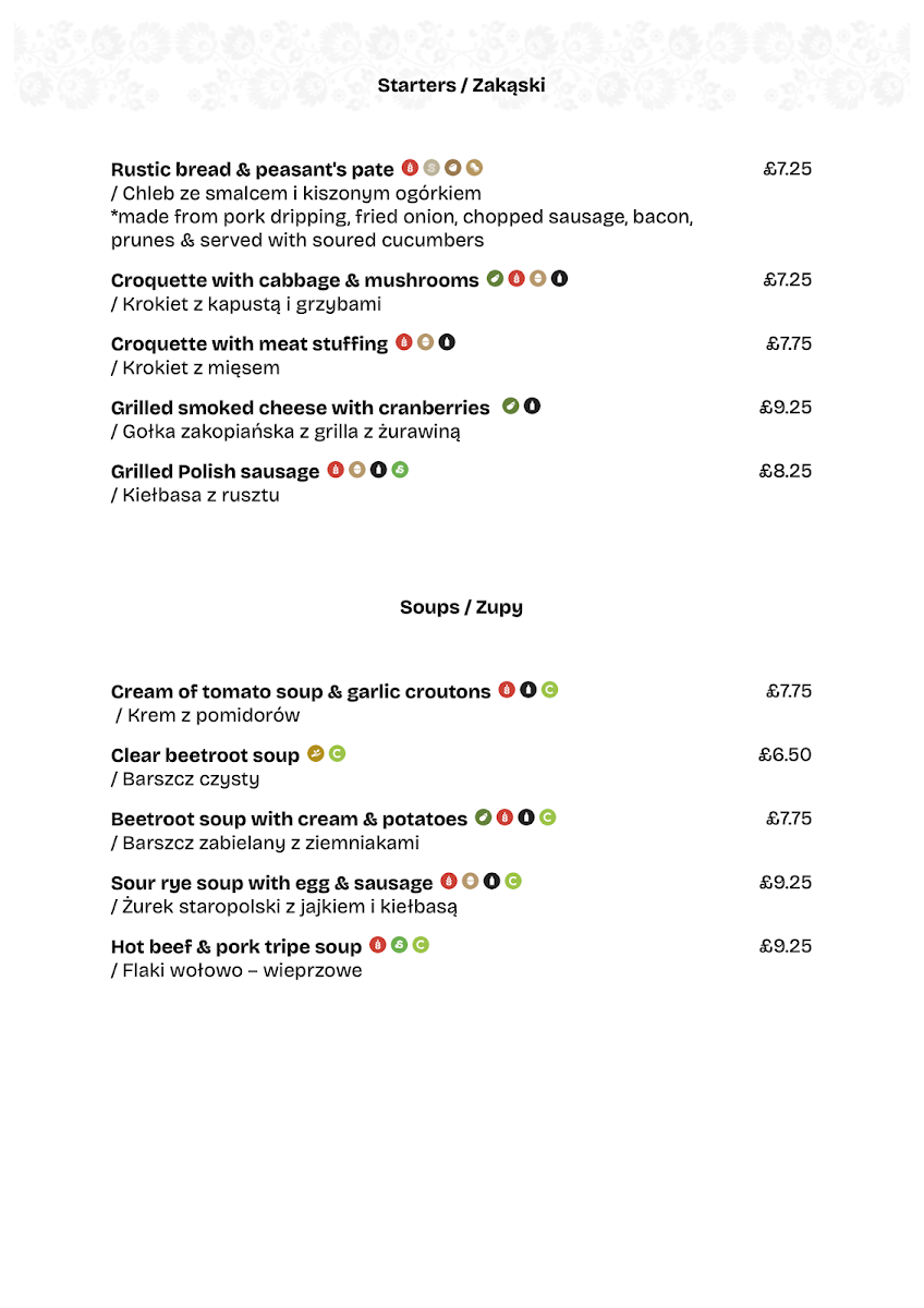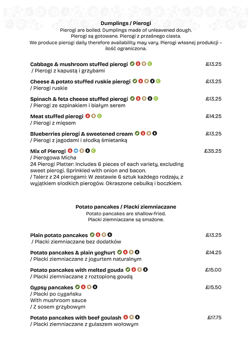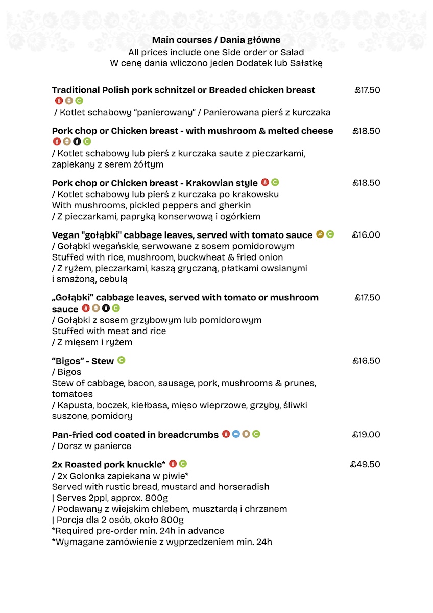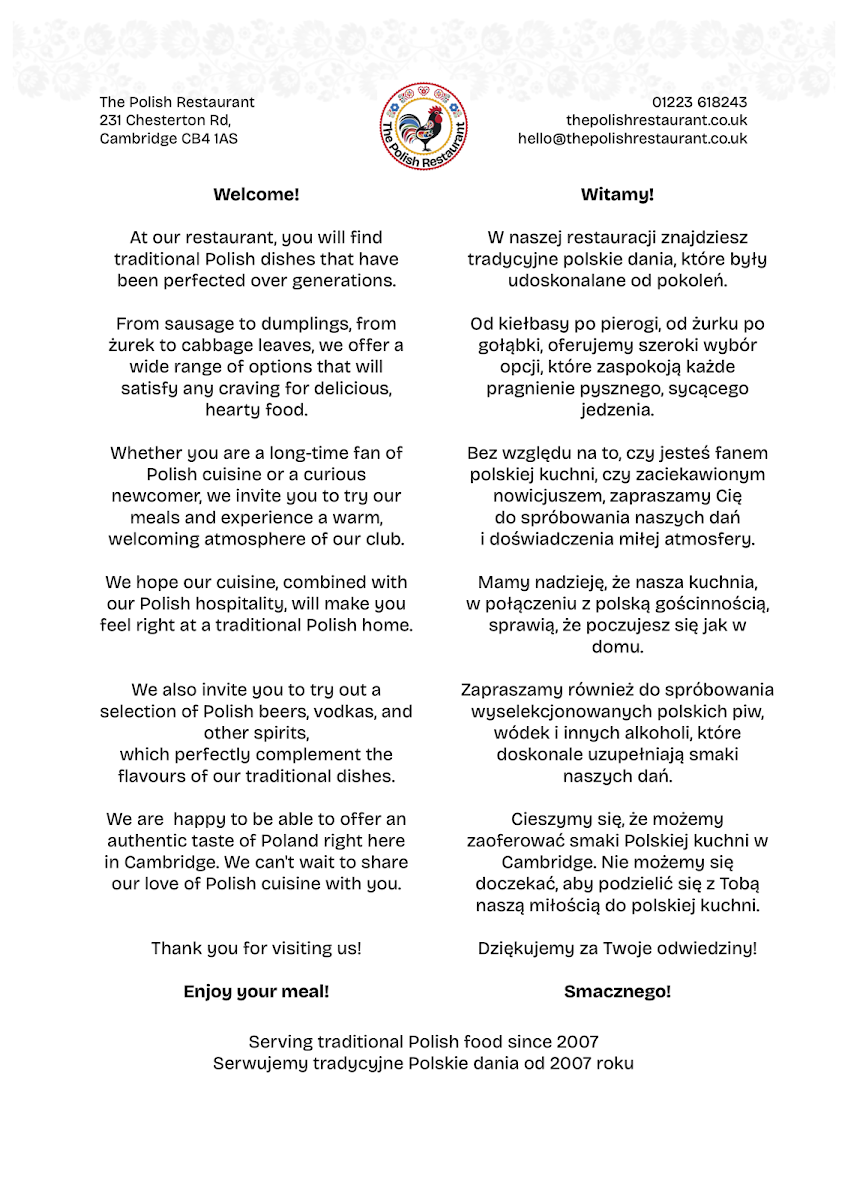 The Polish Restaurant Cambridge Menu